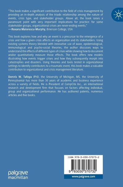 This book explores how and why an event is a precursor to the emergence of a crisis and how a given crisis affects an organization and its stakeholders. Using existing systems theory blended with innovative use of wave, epidemiological, immunological and psycho-social theories, the author discusses ways to understand the effects of different types of crises while showing how to document and/or quantitatively measure those effects. The book offers new models illustrating how events trigger crises and how they subsequently morph into catastrophes and disasters. Using theories and tools tested in organizational settings to identify contributors to a traumatic event, this book makes a valuable contribution to organizational and crisis management literature.