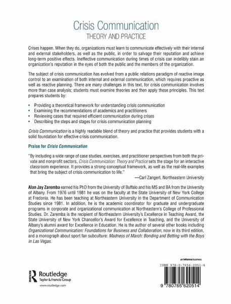 Crises happen. When they do, organizations must learn to effectively communicate with their internal and external stakeholders, as well as the public, in order to salvage their reputation and achieve long-term positive effects. Ineffective communication during times of crisis can indelibly stain an organization's reputation in the eyes of both the public and the members of the organization. The subject of crisis communication has evolved from a public relations paradigm of reactive image control to an examination of both internal and external communication, which requires proactive as well as reactive planning. There are many challenges in this text, for crisis communication involves more than case analysis; students must examine theories and then apply these principles. This text prepares students by: Providing a theoretical framework for understanding crisis communication Examining the recommendations of academics and practitioners Reviewing cases that required efficient communication during crises Describing the steps and stages for crisis communication planning Crisis Communication is a highly readable blend of theory and practice that provides students with a solid foundation for effective crisis communication.