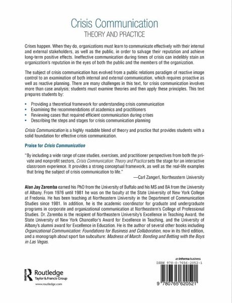 Crises happen, and when they do organizations must be prepared to communicate effectively with thier internal and external stakeholders, and with the public. This innovative text adds theoretical coverage and practical application to the more traditional study of crisis communication through case analysis. Each chapter includes Objectives, Case Study, Pratitioner Perspective, and Exercises, and an online Instructor's