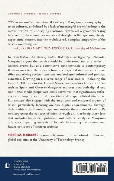 In Crisis Cultures Nicholas Manganas examines crisis as a constant state in modern Western societies, focusing on how digital media sustain these crises. Using case studies like the Capitol Hill riots, he provides a novel historical interpretation of our present condition, assessing its impacts on cultural identities and political dynamics.