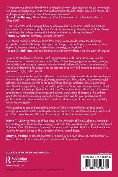 This well-written and engaging book demonstrates how economic, social and political changes have undermined professional work and career opportunities in the United States. Long considered among the very best jobs in the economy - secure, well-paid, autonomous and fulfilling - professional work has become more precarious and hence less appealing. Leicht and Fennell document these changes, masterfully linking economic, social, and political trends to the changing labour market for professional workers, demonstrating how social change has implications for current and future professional workers. In so doing, they provide rich insights of interest to a broad audience. - Tracey L. Adams, Professor, Western University