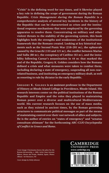 'Crisis' is the defining word for our times and it likewise played a key role in defining the scope of government during the Roman Republic. This book is a comprehensive analysis of key incidents in the history of the Republic that can be characterized as crises, and the institutional response mechanisms that were employed by the governing apparatus to resolve them. Concentrating on military and other violent threats to the stability of the governing system, this book highlights both the strengths and weaknesses of the institutional framework that the Romans created. Looking at key historical moments, Gregory K. Golden considers how the Romans defined a crisis and what measures were taken to combat them, including declaring a state of emergency, suspending all non-war-related business, and instituting an emergency military draft, as well as resorting to rule by dictator in the early Republic.