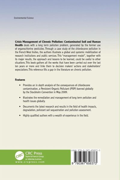 Crisis Management of Chronic Pollution: Contaminated Soil and Human Health deals with a long term pollution problem, generated by the former use of organochlorine pesticides. Through a case study of the chlordecone pollution in the French West Indies, the authors illustrate a global and systemic mobilization of research institutions and public services. This "management model", together with its major results, the approach and lessons to be learned, could be useful to other situations. This book gathers all the works that have been carried out over the last ten years or more and links them to decision makers' actions and stakeholders' expectations. This reference fills a gap in the literature on chronic pollution.