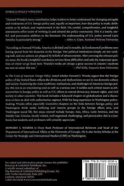 In The Crisis of American Foreign Policy, noted scholar Howard J. Wiarda argues that the foreign policy of the United States reflects the divisions and dysfunctions we see in our domestic culture and society. This text tackles such critical issues as ethnocentrism in foreign policy as well as U.S. efforts to extend democracy, human rights, and civil society in other countries. Key areas covered include Europe, Asia, Africa, Latin America, and the Middle East. Concise, clearly written, well-organized, challenging, and provocative, this is a text that students and professors alike will appreciate.