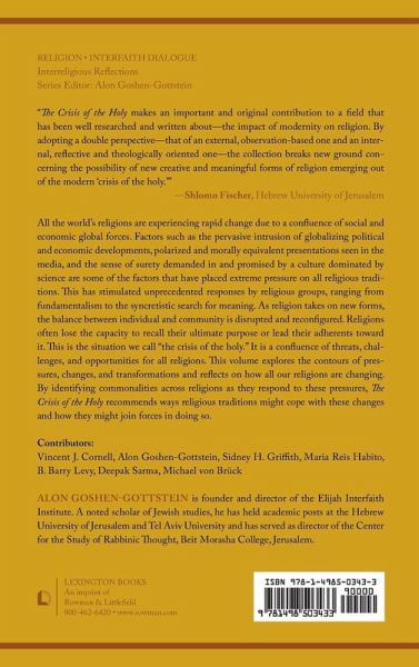 Foreword: Think-Tank of the Elijah Interfaith Institute Barcelona 2004 Preface Alon Goshen-Gottstein Chapter 1: "The Holy" in Religions Alon Goshen-Gottstein Chapter 2: Summary of Essays Alon Goshen-Gottstein Chapter 3: Buddhism Michael von Brück and Maria Reis Habito Chapter 4: Christianity: A Roman Catholic's View Sidney H. Griffith Chapter 5: Judaism: Challenges and Opportunities in the Contemporary Jewish Crisis of the Holy B. Barry Levy Chapter 6: Hindusim: The Creation and Transformation of Hinduism Deepak Sarma Chapter 7: Islam Vincent J. Cornell Chapter 8: Concluding Reflections Alon Goshen-Gottstein