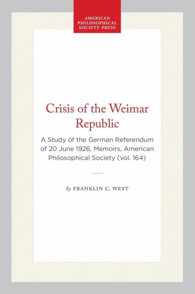 Contents: The Uncompleted World of the Revolution & the Origins of the Dispute Over the Princes' Properties; The First Stages of the Controversy, Nov. 1925 to Jan. 1926: The Communists Set the Pace; The Social Democratic Party Astride Two Horses: The SPD's Decision to Support the Referendum, Jan., 1926; The Dilemma of the Middle Parties: Could the Reichstage Find an Alternative to the Initiative Proposal? Jan.-March, 1926; "The Center Party Must Remain the Center Party"; From the Initiative to the Referendum, March-June, 1926: Chances for Parliamentary Action Fade; & The Failure of the Referendum & Its Aftermath.