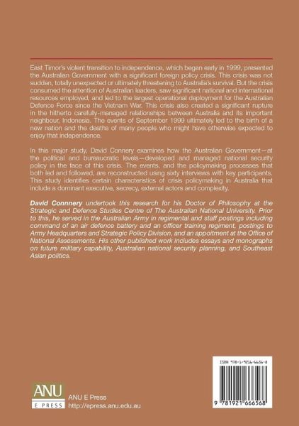 East Timor's violent transition to independence, which began early in 1999, presented the Australian Government with a significant foreign policy crisis. This crisis was not sudden, totally unexpected or ultimately threatening to Australia's survival.