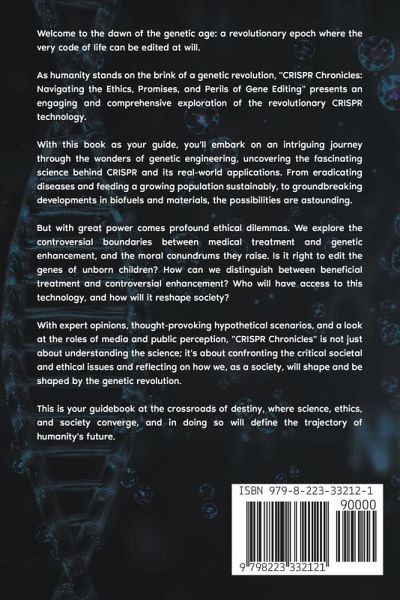 Welcome to the dawn of the genetic age: a revolutionary epoch where the very code of life can be edited at will. As humanity stands on the brink of a genetic revolution, "CRISPR Chronicles: Navigating the Ethics, Promises, and Perils of Gene Editing" presents an engaging and comprehensive exploration of the revolutionary CRISPR technology. With this book as your guide, you'll embark on an intriguing journey through the wonders of genetic engineering, uncovering the fascinating science behind CRISPR and its real-world applications. From eradicating diseases and feeding a growing population sustainably, to groundbreaking developments in biofuels and materials, the possibilities are astounding. But with great power comes profound ethical dilemmas. We explore the controversial boundaries between medical treatment and genetic enhancement, and the moral conundrums they raise. Is it right to edit the genes of unborn children? How can we distinguish between beneficial treatment and controversial enhancement? Who will have access to this technology, and how will it reshape society? With expert opinions, thought-provoking hypothetical scenarios, and a look at the roles of media and public perception, "CRISPR Chronicles" is not just about understanding the science; it's about confronting the critical societal and ethical issues and reflecting on how we, as a society, will shape and be shaped by the genetic revolution. This is your guidebook at the crossroads of destiny, where science, ethics, and society converge, and in doing so will define the trajectory of humanity's future.
