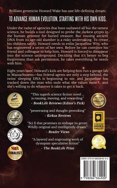 From an award-winning writer and biomedical researcher comes a science fiction thriller about a man who braves the ruins of our genetic past-and awakens humanity's sleeping destiny. Brilliant geneticist Howard Wake has one life-defining dream: to advance human evolution, starting with his own kids. Under the radar of repressive agencies, he builds a tool designed to probe the human genome for buried treasure. But rousing ancient DNA from its age-old slumber is a risky undertaking. To create his children safely, Howard needs to enlist Jacqueline Witt, who has engineered a secret of her own. Before he can convince his friend and colleague to help him, Howard is forced to disappear into the science underground. Deciding that it's better to beg forgiveness than ask permission, he takes everything he needs with him. Eight years later, Howard's kids are helping him run a garage lab in Massachusetts-but federal agents are only a step behind, the twins' sleeping DNA is beginning to stir, and Jacqueline has tracked down the man who stole what she values most ... and she's willing to do whatever it takes to get it back. PNWA first-place winner, BookLife Prize semifinalist, Eric Hoffer Awards honorable mention, finalist for Eric Hoffer First Horizon Award and Grand Prize, American Book Fest Best Book Awards, Foreword INDIES Awards, Indies Today Awards, National Indie Excellence Awards, and Readers' Favorite Awards.