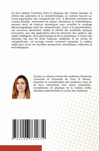 Ce livre explore l'interface entre la physique des cristaux liquides, la chimie des polymères et la nanotechnologie, en mettant l'accent sur l'auto-organisation des nanoparticules d'or. Il démontre comment les cristaux liquides, notamment les phases nématiques et cholestériques, peuvent servir de matrices dynamiques pour contrôler le couplage électromagnétique entre les nanoparticules. Grâce à la polymérisation, ces structures deviennent stables et offrent des propriétés optiques innovantes, avec des applications dans les domaines des capteurs, des objets intelligents, de la plasmonique et de la photonique. À travers des exemples tels que les stries huileuses stabilisées et les arches de nanoparticules, cet ouvrage montre comment manipuler la matière molle pour ouvrir de nouvelles perspectives scientifiques, médicales et technologiques.