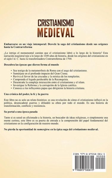 ¿¿¿¿ **Embarcarse en un viaje intemporal: Desvele la saga del cristianismo desde sus orígenes hasta la Contrarreforma** ¿¿¿¿ ¿Le intriga el monumental camino que el cristianismo labró a lo largo de la historia? Esta narración magistral teje a lo largo de 1600 años de historia, desde los orígenes del cristianismo en el siglo I d. C. hasta la transformadora Contrarreforma de 1700. ¿¿¿¿ **Descubra las épocas que dieron forma al mundo** Sea testigo de la metamorfosis de Roma con el auge del cristianismo. Sumérjase en el profundo impacto del Gran Cisma. Reviva el fervor de las cruzadas y la mística de los templarios. Comprenda el legado perdurable de la Reconquista. Desentrañe la compleja interacción entre el cristianismo y el islam. Investigue la Reforma y la corrupción de la Iglesia católica. Conozca a los influyentes papas que dirigieron la historia cristiana. ¿¿¿¿¿ **Una crónica del poder, la fe y la guerra** Este libro no es solo un relato histórico; es una revelación de cómo el cristianismo influyó en la política, desencadenó guerras y difundió su ethos por todo el mundo. Es una historia de transformación, conflicto y resistencia. ¿¿¿¿ **Su portal a una época pasada** Tanto si es usted un aficionado a la historia, un buscador de ideas religiosas, o simplemente una mente curiosa, este libro es su puerta de entrada a la comprensión del papel fundamental del cristianismo en la configuración de nuestro mundo.