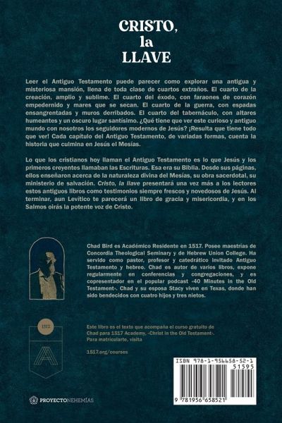 Leer el Antiguo Testamento puede parecer como explorar una antigua y misteriosa mansión, llena de toda clase de cuartos extraños. El cuarto de la creación, amplio y sublime. El cuarto del éxodo, con faraones de corazón empedernido y mares que se secan. El cuarto de la guerra, con espadas ensangrentadas y muros derribados. El cuarto del tabernáculo, con altares humeantes y un oscuro lugar santísimo. ¿Qué tiene que ver este curioso y antiguo mundo con nosotros los seguidores modernos de Jesús? ¡Resulta que tiene todo que ver! Cada capítulo del Antiguo Testamento, de variadas formas, cuenta la historia que culmina en Jesús el Mesías. Lo que los cristianos hoy llaman el Antiguo Testamento es lo que Jesús y los primeros creyentes llamaban las Escrituras. Esa era su Biblia. Desde sus páginas, ellos enseñaron acerca de la naturaleza divina del Mesías, su obra sacerdotal, su ministerio de salvación. Cristo, la llave presentará una vez más a los lectores estos antiguos libros como testimonios siempre frescos y novedosos de Jesús. Al terminar, aun Levítico te parecerá un libro de gracia y misericordia, y en los Salmos oirás la potente voz de Cristo.