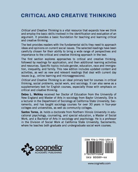 Critical and Creative Thinking is a vital resource that expands how we think and employ the basic skills involved in the identification and evaluation of an argument. It provides a basic foundation for teaching and learning critical and creative thinking. The text provides readers with the fundamental skills they need to approach ideas and opinions on current social issues. The selected readings have been carefully chosen for their ability to bring a wide range of perspectives and importance to the critical and creative thinking approach in the text. The first section explores approaches to critical and creative thinking, followed by readings for application, and then additional learning activities and resources. Specific topics include gender, education, race and immigration, inequality, and family. This new edition includes updated content and activities, as well as new and relevant readings that deal with current day issues (e.g., online learning and microaggressions). Critical and Creative Thinking is an ideal primary text for courses in critical thinking, social problems, social work, and sociology. It can also serve as a supplementary text for English courses, especially those with emphasis on critical and creative thinking.
