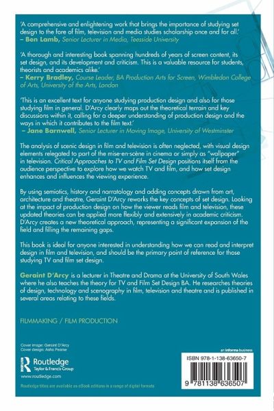 Geraint Dâ Arcy brings all of the relevant theories and histories of set design together to produce a companion and guide to the critical study of scenic design. By using semiotics, history and narratology and adding concepts drawn from art, architecture and theatre, the work redraws the history of scenic design in film and television.