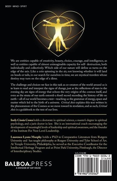 We are entities capable of creativity, beauty, choice, courage, and intelligence, as well as entities capable of almost unimaginable capacity for self- destruction, both individually and collectively. Which side of our nature will define us turns on the edge of the axis. Like a coin spinning in the air, not knowing whether it will land on heads or tails, in our search for ourselves in time, we are mystical travelers whose destiny may turn on the edge of a dime. The challenge and choices we face in this task as co-creators of the world around us is to learn to read and interpret the signs of change, just as the reflections of stars in the evening sky are signs of energy that echoes the very origins of the cosmos itself, and even as the strata of our earth entomb a fossil record recording the history of life on earth-all of our world becomes a text-teaching us the grammar of energy, space and matter which led to the birth of a universe. Critical Axis explains this text written in the phenomenon of the Cosmos as we move toward its revelation, and as such, Critical Axis is a guidebook to the text of our lives.