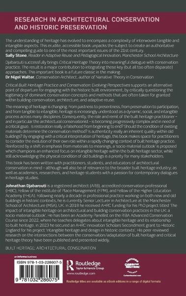 Critical Built Heritage Practice and Conservation - Evolving Perspectives supports an alternative point of departure for engaging with the historic built environment, by critically questioning the legitimacy of dominant conservation concepts and methods that are often taken for granted within building conservation, architecture, and adaptive reuse.