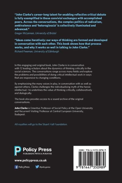 In this engaging and original book, John Clarke is in conversation with twelve leading scholars about the collaborative and dialogical processes of critical thinking in the social sciences. The conversations range across many fields and explore the problems and possibilities of doing critical intellectual work today. The book also provides access to a sound archive of the original conversations.