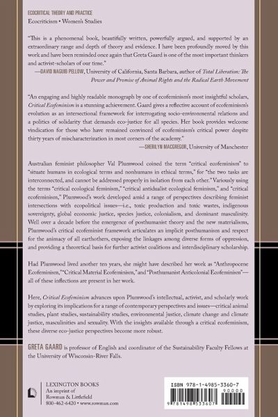 This book affirms its feminist and activist roots, resists gender essentialisms, and companions the activist orientations of critical animal studies and environmental justice. It draws on feminist science and anticolonial studies, utilizing a posthumanist, queer feminist methodology to enhance discussions of today’s ecopolitical challenges.