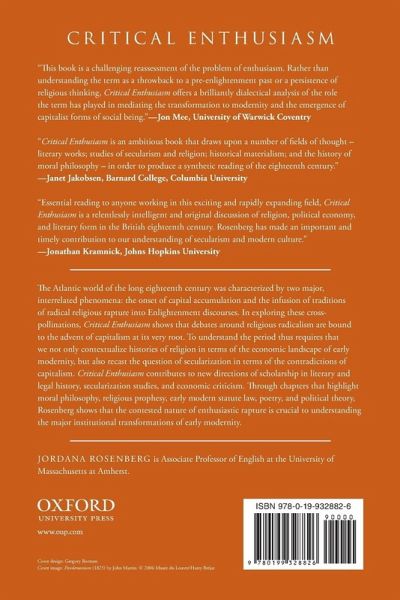 Critical Enthusiasm tracks the intertwined histories of religious radicalism and economic transformation in the long eighteenth century. Rosenberg situates the rhetoric of enthusiastic rapture in the context of the major institutional transformations of early modernity.