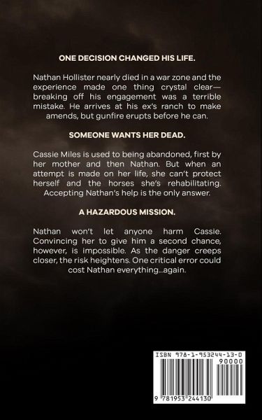 One decision changed his life. Nathan Hollister nearly died in a war zone and the experience made one thing crystal clear-breaking off his engagement was a terrible mistake. He arrives at his ex's ranch to make amends, but gunfire erupts before he can. Someone wants her dead. Cassie Miles is used to being abandoned, first by her mother and then Nathan. But when an attempt is made on her life, she can't protect herself and the horses she's rehabilitating. Accepting Nathan's help is the only answer. A hazardous mission. Nathan won't let anyone harm Cassie. Convincing her to give him a second…mehr
