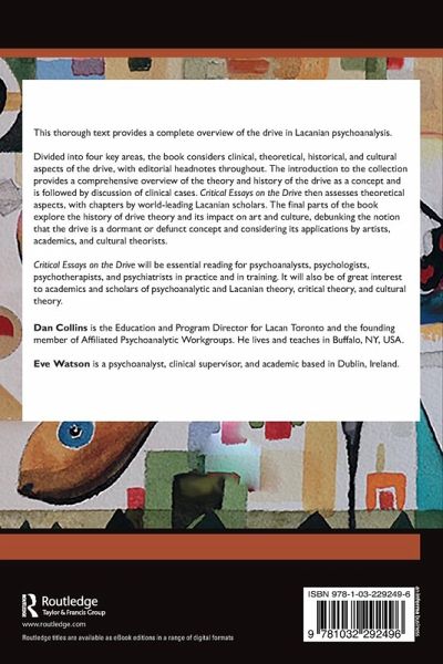 Critical Essays on the Drive will be essential reading for psychoanalysts, psychologists, psychotherapists, and psychiatrists in practice and in training. It will also be of great interest to academicsand scholars of psychoanalytic and Lacanian theory, critical theory, and cultural theory.