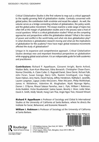 Critical Globalization Studies is a comprehensive critical volume on globalization that balances both theory and practice. It includes pieces on contemporary globalization theory as well as accounts of globalization on the ground.