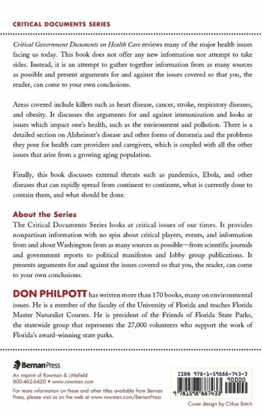 Critical Government Documents on Health Care reviews today’s major health issues. Gathering key information from many sources, the book presents arguments for and against the issues covered so that readers can reach their own conclusions. Topics include killer diseases (such as cancer, obesity, or stroke), immunization, pollution, and more.