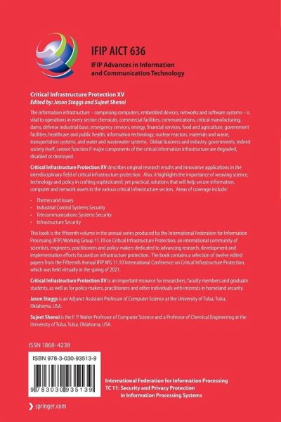 This book is the fourteenth volume in the annual series produced by the International Federation for Information Processing (IFIP) Working Group 11.10 on Critical Infrastructure Protection, an international community of scientists, engineers, practitioners and policy makers dedicated to advancing research, development and implementation efforts focused on infrastructure protection. The book contains a selection of 13 edited papers from the Fifteenth Annual IFIP WG 11.10 International Conference on Critical Infrastructure Protection, held as a virtual event during the spring of 2021.