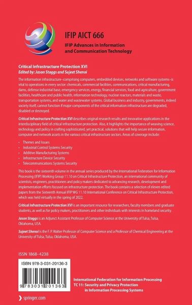 This book is the 16th volume in the annual series produced by the International Federation for Information Processing (IFIP) Working Group 11.10 on Critical Infrastructure Protection, an international community of scientists, engineers, practitioners and policy makers dedicated to advancing research, development and implementation efforts focused on infrastructure protection.
