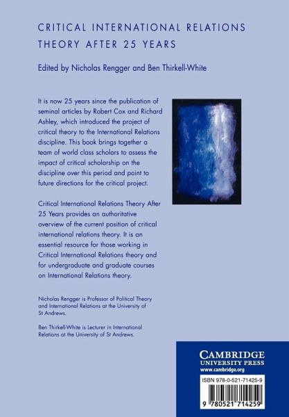 It is now 30 years since the publication of seminal articles by Robert Cox and Richard Ashley, which introduced the project of critical theory to the international relations discipline. This 2007 book brings together a team of world-class scholars to assess the impact of critical scholarship on the discipline over this period and point to future directions for the critical project. The book is an authoritative overview of the current position of critical international relations theory. It is an essential resource for those working in critical international relations theory and for undergraduate and graduate courses on Internal Relations theory.