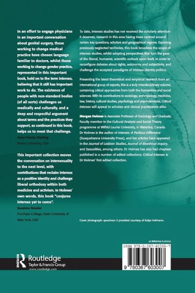 'In an effort to engage physicians in an important conversation about genital surgery, those working to change medical practice have chosen language familiar to doctors, whilst those working to change gender practice, represented in this important book, hold on to the term intersex, believing that it still has important work to do. The existence of people with non-standard bodies (of all sorts) challenges us medically and culturally, and a deep and respectful argument about terms and the practices they support, as continued in this book, helps us to meet that challenge.' Anne Fausto-Sterling, Brown University, USA 'This important collection moves the conversation on intersexuality to the next level, with contributions that reclaim intersex as a positive identity and challenge liberal orthodoxy within both medicine and activism. In Holmes' own words, this book conjures intersex yet to come".' Suzanne Kessler, Purchase College, State University of New York, USA '... highlights how many intersex people do not identify with queer labels and even resent the automatic inclusion of intersex issues under the queer rubric. ... If one is looking for a definition of intersex, it won't be found here. And that is precisely the point. Holmes and the contributors provide enough historical context to ground the term, from early medical developments in the early 1900s to activist reclamations in the nineties, but all of the authors are careful not to plant the stakes too firmly.' Canadian Dimension '... contributions that are precise, plainly written and very illuminating... the detail is fascinating and somewhat unnerving... beautifully clear and compassionate...' Contemporary Sociology
