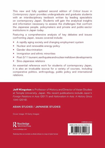 The new edition of Critical Issues in Contemporary Japan provides students with an interdisciplinary textbook written by leading specialists on contemporary Japan. Students will gain the analytical insights necessary to assess the challenges that confront the Japanese people, policymakers and private and public sector institutions today.