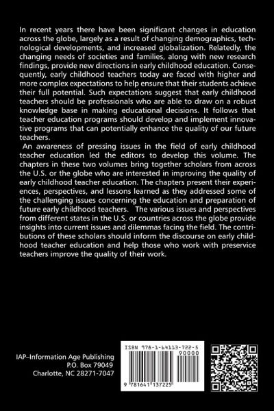 In recent years there have been significant changes in education across the globe, largely as a result of changing demographics, technological developments, and increased globalization. Relatedly, the changing needs of societies and families, along with new research findings, provide new directions in early childhood education. Consequently, early childhood teachers today are faced with higher and more complex expectations to help ensure that their students achieve their full potential. Such expectations suggest that early childhood teachers should be professionals who are able to draw on a robust knowledge base in making educational decisions. It follows that teacher education programs should develop and implement innovative programs that can potentially enhance the quality of our future teachers. An awareness of pressing issues in the field of early childhood teacher education led the editors to develop this volume. The chapters in these two volumes bring together scholars from across the US and the globe who are interested in improving the quality of early childhood teacher education. The chapters present their experiences, perspectives, and lessons learned as they addressed some of the challenging issues concerning the education and preparation of future early childhood teachers. The various issues and perspectives from different states in the US or countries across the globe provide insights into current issues and dilemmas facing the field. The contributions of these scholars should inform the discourse on early childhood teacher education and help those who work with preservice teachers improve the quality of their work.