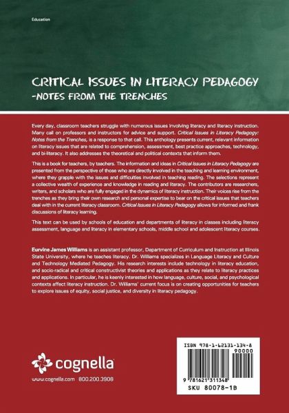 Every day, classroom teachers struggle with numerous issues involving literacy and literacy instruction. Many call on professors and instructors for advice and support. Critical Issues in Literacy Pedagogy: Notes from the Trenches, is a response to that call. This anthology presents current, relevant information on literacy issues that are related to comprehension, assessment, best practice approaches, technology, and bi-literacy. It also addresses the theoretical and political contexts that inform them. This is a book for teachers, by teachers. The information and ideas in Critical Issues in Literacy Pedagogy are presented from the perspective of those who are directly involved in the teaching and learning environment, where they grapple with the issues and difficulties involved in teaching reading. The selections represent a collective wealth of experience and knowledge in reading and literacy. The contributors are researchers, writers, and scholars who are fully engaged in the dynamics of literacy instruction. Their voices rise from the trenches as they bring their own research and personal expertise to bear on the critical issues that teachers deal with in the current literacy classroom. Critical Issues in Literacy Pedagogy allows for informed and frank discussions of literacy learning. This text can be used by schools of education and departments of literacy in classes including literacy assessment, language and literacy in elementary schools, middle school and adolescent literacy courses. Eurvine J. Williams, Ph.D. is an assistant professor in literacy at Illinois State University. Dr. Williams is a Certified INTEL (Teach to the Future) Instructor and has comprehensive experience in Technology Mediated Pedagogy for K-Higher education. He has collaborated in the development of NASA Earth Science Technology Curriculum and has amassed a wealth of technology knowledge and experience as a technology coordinator for a number of research grants and projects. Dr. Williams is well versed in Web 2.0 and 3.0 Technologies and Client-Server Architecture for eLearning. He specializes in Language Literacy and Culture and Technology Mediated Pedagogy. His research interest areas include: Technology Use and Practice in Literacy Instruction; Socio-radical and Critical Constructivist theory and practice and Socio-psycholinguistics.