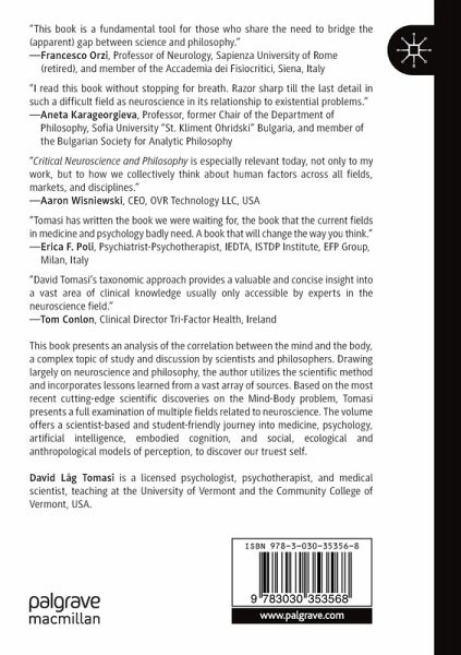 This book presents an analysis of the correlation between the mind and the body, a complex topic of study and discussion by scientists and philosophers. Drawing largely on neuroscience and philosophy, the author utilizes the scientific method and incorporates lessons learned from a vast array of sources. Based on the most recent cutting-edge scientific discoveries on the Mind-Body problem, Tomasi presents a full examination of multiple fields related to neuroscience. The volume offers a scientist-based and student-friendly journey into medicine, psychology, artificial intelligence, embodied…mehr