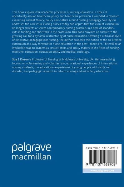 This book explores the academic processes of nursing education in times of uncertainty around healthcare policy and healthcare provision. Grounded in research examining current theory, policy and culture around nursing pedagogy, Sue Dyson addresses the core issues facing nurses today and argues that the current curriculum no longer reflects or serves contemporary nursing practice. In a time of scandals, cuts in funding and shortfalls in the profession, this book provides an answer to the growing call for a dynamic restructuring of nurse education. Offering a critical analysis of innovative pedagogies for nursing, the author proposes the notion of the co-created curriculum as a way forward for nurse education in the post-Francis era. This will be an invaluable read to academics, practitioners and policy makers in the fields of nursing, medicine, education, education policy and medical sociology.
