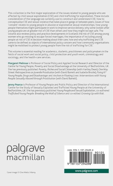 This volume is the first major exploration of the issues relevant to young people who are affected by sexual exploitation and trafficking from a variety of critical perspectives. Issues include accommodation, gangs, migrant and refugee communities, perpetrators, international policy and the language through which we construct child exploitation.