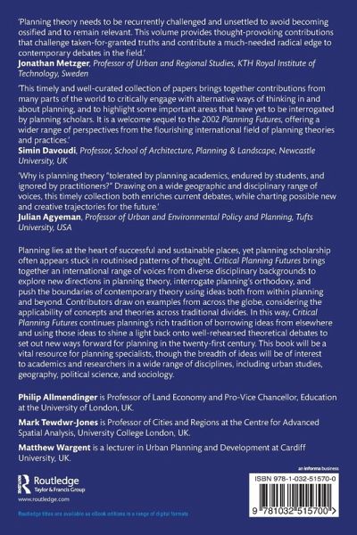 Planning lies at the heart of successful and sustainable places, yet planning scholarship often appears stuck in routinised patterns of thought. Critical Planning Futures brings together an international range of voices from diverse disciplinary backgrounds to explore new directions in planning theory, interrogate planning's orthodoxy, and push the boundaries of contemporary theory using ideas both from within planning and beyond. Contributors draw on examples from across the globe, considering the applicability of concepts and theories across traditional divides. In this way, Critical Planning Futures continues planning's rich tradition of borrowing ideas from elsewhere and using those ideas to shine a light back onto well-rehearsed theoretical debates to set out new ways forward for planning in the twenty-first century. This book will be a vital resource for planning specialists, though the breadth of ideas will be of interest to academics and researchers in a wide range ofdisciplines, including urban studies, geography, political science, and sociology.
