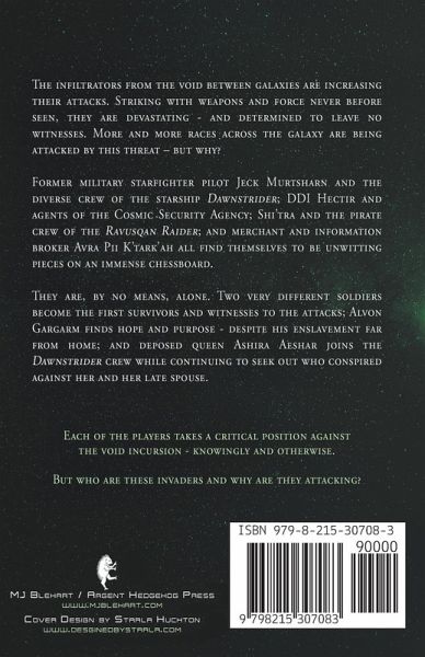 The infiltrators from the void between galaxies are increasing their attacks. Striking with weapons and force never before seen, they are devastating - and determined to leave no witnesses. More and more races across the galaxy are being attacked by this threat - but why? Former military starfighter pilot Jeck Murtsharn and the diverse crew of the starship Dawnstrider; DDI Hectir and agents of the Cosmic Security Agency; Shi'tra and the pirate crew of the Ravusqan Raider; and merchant and information broker Avra Pii K'tark'ah all find themselves to be unwitting pieces on an immense chessboard. They are, by no means, alone. Two very different soldiers become the first survivors and witnesses to the attacks; Alvon Gargarm finds hope and purpose - despite his enslavement far from home; and deposed queen Ashira Aeshar joins the Dawnstrider crew while continuing to seek out who conspired against her and her late spouse. Each of the players takes a critical position against the void incursion - knowingly and otherwise. But who are these invaders and why are they attacking?
