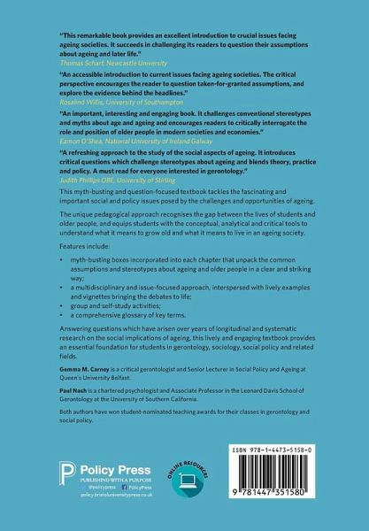 This myth-busting and question-focused textbook tackles the important social and policy issues posed by ageing. A unique pedagogical approach recognises the gap between the lives of students and older people, and equips students with the conceptual, analytical and critical tools to understand what it means to grow old and live in an ageing society.