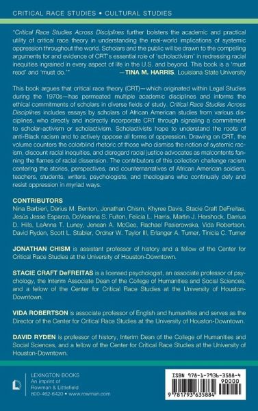 Critical Race Studies Across Disciplines exhibits essays by Black studies scholars from various disciplines outside of legal studies which directly and indirectly incorporate critical race theory into their analysis of the Black experience. As scholar-activists or scholactivists, these academics are firmly committed to African American liberation.