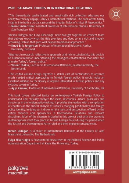 "Critical Readings of Turkey's Foreign Policy is certainly the fruit of a wellthought through and diligently executed project by its editors, Birsen Erdogan and Fulya Hisarlioglu, and contributors. Bringing together a variety of critical approaches, bridging different research methodologies, and theoretical frameworks, this book is a timely addition to the International Relations (ir) discipline in Turkey and beyond." (Zeynep Alemdar, European Review of International Studies ERIS, Issue 10, 2023)