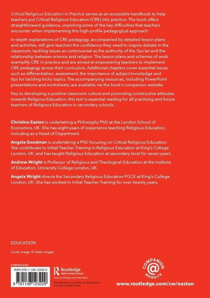 Critical Religious Education in Practice serves as an accessible handbook to help teachers put Critical Religious Education (CRE) into practice. The book offers straightforward guidance, unpicking some of the key difficulties that teachers encounter when implementing this high-profile pedagogical approach.