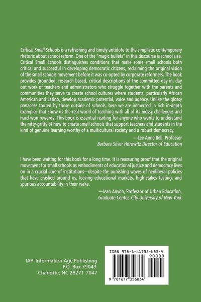 Critical Small Schools: Beyond Privatization in New York City Urban Educational Reform features the most current empirical research about the successes and challenges of the small schools movement and the implications of such for urban public educational policy. Situated in a climate of hierarchical reform, many of the principles of the original small schools movement-which are rooted in community participation, innovative pedagogies and assessment, and equity and social justice-have become obscured by an educational agenda that emphasizes top-down mandates and standards-based reform. With the increased popularity and the rapid proliferation of small schools, the emphasis on 'size only' has resulted in a bifurcation of the small schools movement; on one end are the small schools which have embraced the democratic, participatory, and self-governing nature of the original movement, while on the other end are schools that have simply reduced their size without rethinking school structures and practices. This book distinguishes the small schools featured and researched in this volume from schools that are simply small and labels them "critical small schools." By documenting the practices that take place in various critical small schools in New York City, we show how these schools have narrowed the achievement gap and increased graduation and college acceptance rates. Although smallness is an essential feature in the design of these schools, it is certainly not the only one and this volume illuminates the other elements that contribute to these schools' successes and shortcomings. Critical Small Schools also challenges the recent emphasis on charter schools as a panacea for urban educational reform. By featuring research about the inner workings of public schools, this volume challenges this new direction that steers successful school development away from public education. Moreover, as every site is fraught with some tension, Critical Small Schools not only offers glimpses into intellectually vibrant and democratic learning communities, but also acknowledges that these concepts are not static and necessitate continual reflection and renewal. At this pivotal moment in educational reform, this volume provides keen insight into the challenges and possibilities of the small schools movement and is indispensable for anyone interested in comprehensive public school reform.