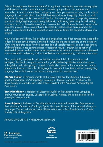 Critical Sociolinguistic Research Methods is a guide to conducting concrete ethnographic and discourse analytic research projects, written by top scholars for students and researchers in social science fields.