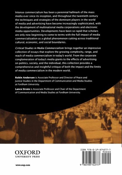 Intense commercialism has been a perennial hallmark of the mass media ever since its inception and throughout the twentieth century the techniques and strategies of the dominant players in the world of media and advertising have become increasingly sophisticated, with the development of multinational media corporations and electronic media opportunities. Developments have been so rapid that scholars are only now beginning to come to terms with the full impact of media commercialization as a global phenomenon cutting across traditional cultural, economic, and social boundaries. Critical Studies in Media Commercialism brings together an impressive collection of essays that explore the growing complexity, range, and reach of media commercialism in today's world. From the corporate conglomeration of today's media giants to the effects of advertising on politics, society, and the individual, this collection provides a comprehensive and insightful critique of both the impact and the limits of media commercialism in the modern world.