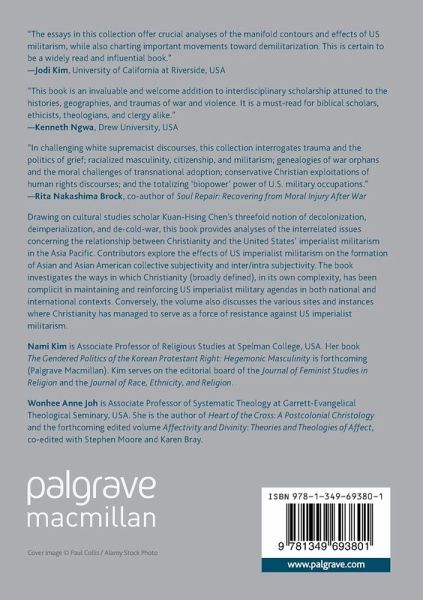 Introduction.- 1. Postcolonial Loss: Collective Grief in the Ruins of Militarized Terror; Wonhee Anne Joh.- 2. Militarism, Masculinism, and Martyrdom: Conditional Citizenship for (Asians) Americans; Tat-Siong Benny Liew.- 3. Demilitarizing Haunted Genealogies as Transgenerational Affective Work of the Holy Ghost; Amy R. Barbour.- 4. (Un)Making Mothers, Orphans, and Transnational Adoptees: The Afterlife of the Vietnam War in Aimee Phan's We Should Never Meet; Mimi Khúc.- 5. A Mission of Biopower: The United States Colonizes the Philippines; Jeremy Posadas.- 6. Killing Time; Jonathon Tran.- 7. The Impasse of Telling the "Moral Story": Transnational Christian Human Rights Advocacy for North Koreans; Nami Kim.- 8. A Thief, a Woman, a People of the Land: Exploring Chamorro Strategies of Incarnation; Michael Sepidoza Campos.- 9. Faith-based Popular Resistance to the Naval Base at Gangjeong of Jeju: