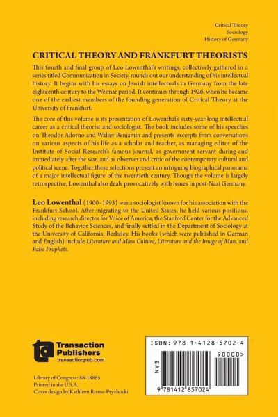 The core of this volume is its presentation of Lowenthal's sixty-year-long intellectual career as a critical theorist and sociologist. The book includes some of his speeches on Theodor Adorno and Walter Benjamin and presents excerpts from conversations on his life as a scholar and teacher, as managing editor of the Institute for Social Research's famous journal, as government servant during and immediately after the war, and as observer and critic of contemporary culture and politics. Together these selections present an intriguing biographical panorama of a major intellectual figure.