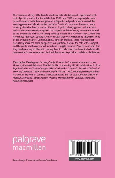 In this timely study, Pawling argues for a renewal of the 'politics of intellectual life', calling for an engaged critical theory written in the spirit of May 1968, as exemplified in the works of figures such as Sartre, Derrida, Badiou, Jameson and Said.