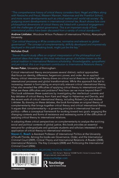 1. Critical Theory, Immanent Critique, and the Problem of the International Part 1: Critical Theory Past and Present: Four Currents of Immanent Critique 2. Dialectics, Historical Materialism, and Repression 3. The Frankfurt School: The Rise of Radical Immanence and Communicative Action Theory Part 2: Critical International Theory: Perspectives on Complementarity 4. Communicative Rationality, Recognition, and the Dual Complementarity of the International Criminal Court 5. Social Ontology: From Critical Realism to the Quantum Challenge 6. Justice, Negative Dialectics and Immanent Complementarity 7. Complementarity Envisaged: Self-Legitimization and the Global Social Imaginary